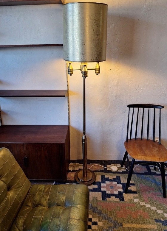 Brutalistische Stehlampe aus Messing mit vier Leuchten aus der Mitte des 20. Jahrhunderts, 1960er Jahre