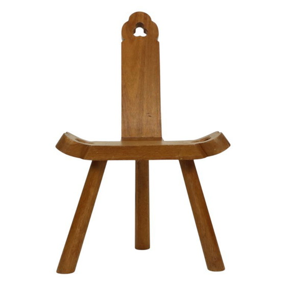 Authentischer spanischer Brutalismus-Dreibeinstuhl aus massiver Eiche, ca. Mitte des 20. Jahrhunderts, Spanien.