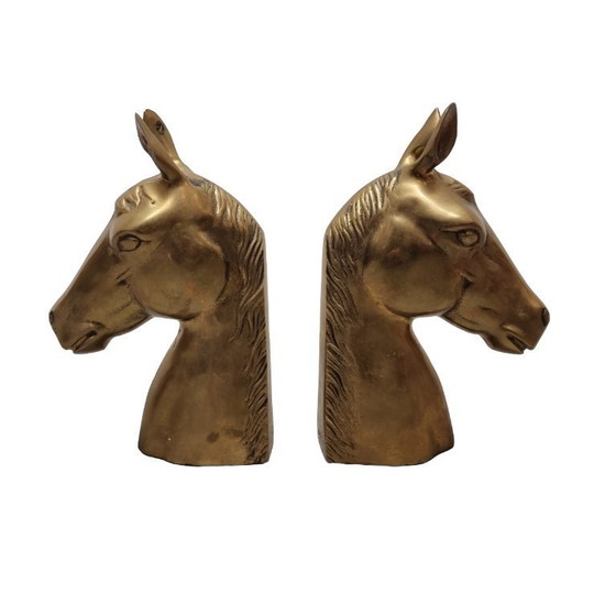 Buchstützen aus Messing in Pferdekopfform aus der Mitte des 20. Jahrhunderts