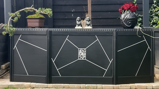 Entdecken Sie die Eleganz dieses wunderschönen Art-déco-Schreibtisches – ein Meisterwerk, das Stil und Funktionalität vereint. Dieses einzigartige Möbelstück mit seinen klaren Linien und geometrischen Mustern verleiht jedem Raum zeitlose Klasse.