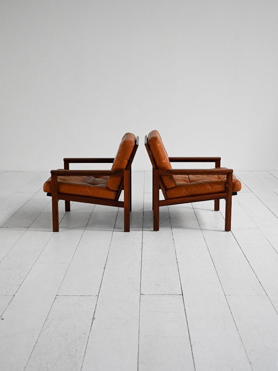 Zwei Sessel aus Palisander und Leder mit gesteppter Polsterung. Modell „Capella“ von Illum Wikkelsø, Dänemark, 1960er Jahre.