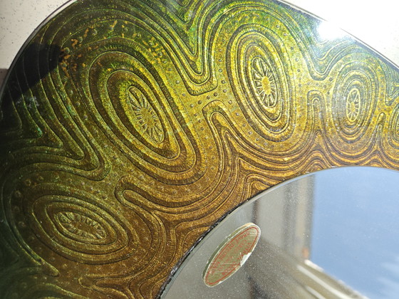 Dies ist ein Vintage-Spiegel von Carlo Pagani mit einem einzigartigen grün-goldenen Muster um den Rahmen. Der Spiegel ist aus hochwertigem Glas gefertigt und zeigt ein kompliziertes Design, das jedem Raum einen Hauch von Eleganz verleiht. Sein Vintage-Stil macht ihn zu einer perfekten Ergänzung für Sammler oder diejenigen, die ihrer Einrichtung einen klassischen Touch verleihen möchten.