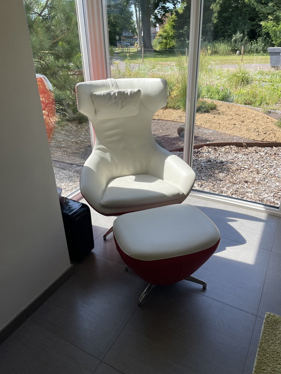 Dieser Sessel von Caruzzo ist ein modernes Möbelstück, das Stil und Komfort vereint. Er zeichnet sich durch ein elegantes Design mit weißem Leder und roten Akzenten aus, was ihn zu einem echten Hingucker in jedem Raum macht. Der Sessel wird durch eine passende Ottomane ergänzt, die für zusätzlichen Komfort und Entspannung sorgt. Der Metallfuß sorgt für Stabilität und Langlebigkeit. Dieses preisgekrönte Design ist perfekt für alle, die moderne Ästhetik zu schätzen wissen.