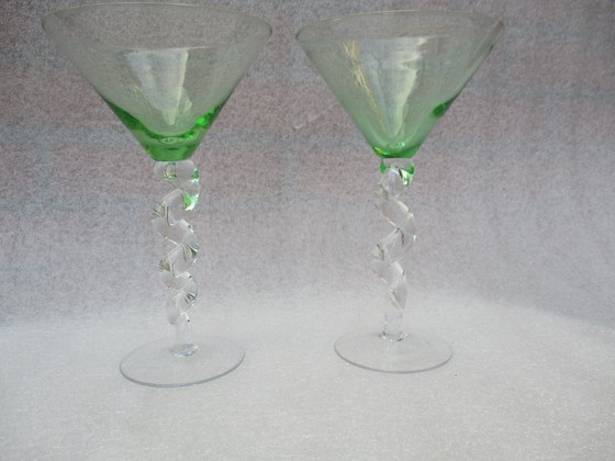 Cocktailglas-Set mit gedrehtem Stiel, Luxus mundgeblasen, grüner Spiralstiel, Studioglas, 21 cm.