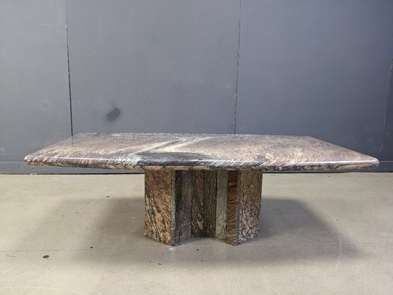 Atemberaubender Marmor-Couchtisch mit der schönsten Naturlackierung, die wir je auf einem Tisch gesehen haben.