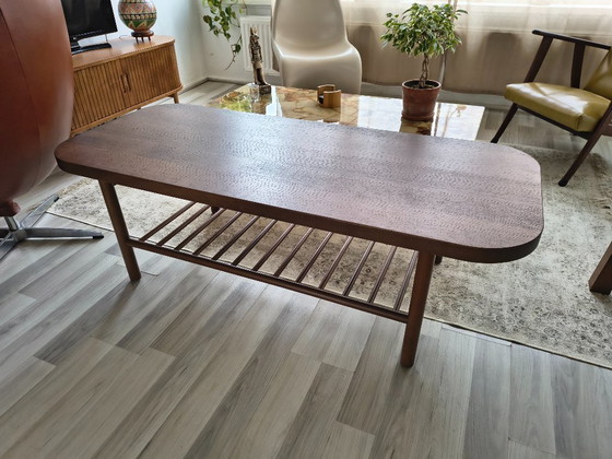 Stilvoller Couchtisch aus dunkelbrauner Buche.