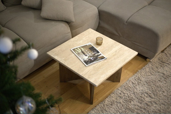 Couchtisch quadrata Travertin aus Naturstein und Massivholz Eiche