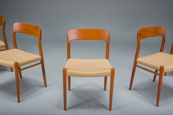 Dänische Teak Mod. 77 Esszimmerstühle mit Papierkordel von Niels O. Møller für J.L. Møllers, 1959, 5 Exemplare