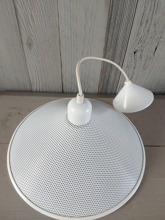 Diese dänische Pendelleuchte aus den 1970er-Jahren verleiht jedem Raum einen Hauch von Vintage-Charme. Mit ihrer eleganten, weißen Metalloberfläche und dem perforierten Schirm spendet sie ein sanftes, stimmungsvolles Licht. Ob über dem Esstisch oder im Wohnzimmer – diese Leuchte vereint Stil und Funktionalität.