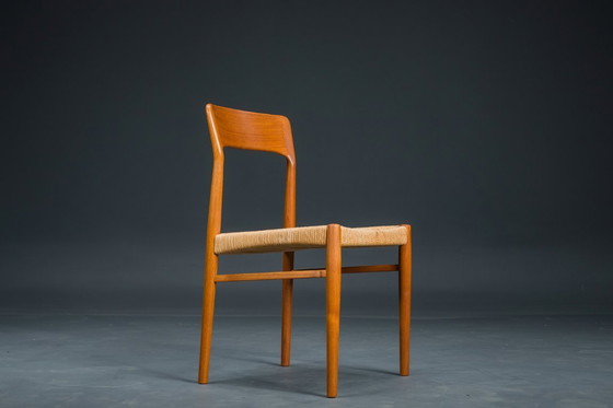 Dänischer Teakholz-Esszimmerstuhl mit Geflecht von Henning Kjaernulf für Koruo Stolefabrik, 1960er Jahre