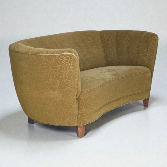 Dänisches 2-Sitzer-Sofa „Banane“ aus den 1960er Jahren, Bezug aus Velours, Buchenholz