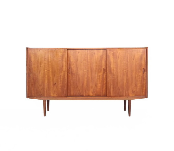 Dänisches Teak-Highboard mit Schiebetüren, 1960er Jahre