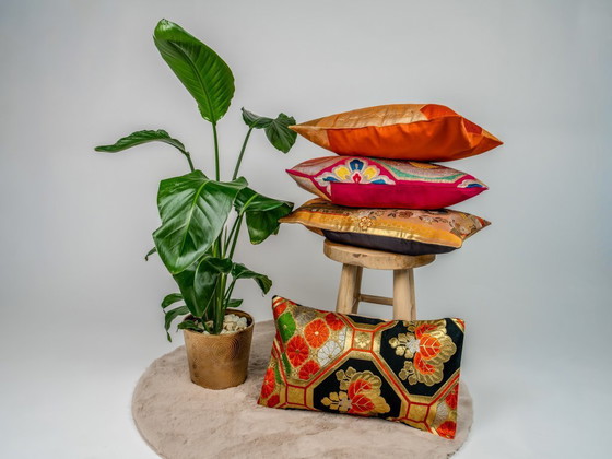 Material: Authentischer, upgecycelter Vintage-Obi (Seide & Metallbrokat).