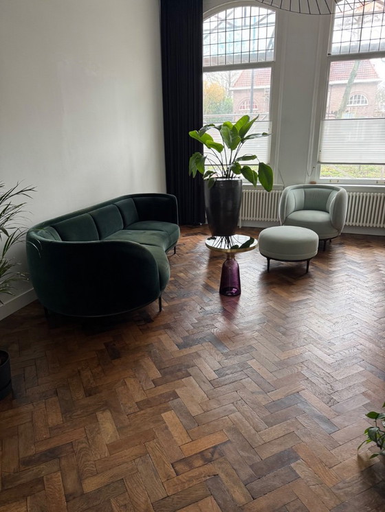 Erleben Sie die ultimative Verbindung von Luxus und Design mit dem exklusiven Wittmann Vuelta-Set. Entworfen vom renommierten spanischen Designer Jaime Hayon, besteht dieses Set aus Sofa und Sessel, die Komfort und künstlerisches Flair vereinen. Der tiefgrüne Samtbezug des Sofas strahlt Eleganz aus, während seine organischen Formen und die geschwungene Rückenlehne ein skulpturales Herzstück in Ihrem Wohnzimmer bilden.
