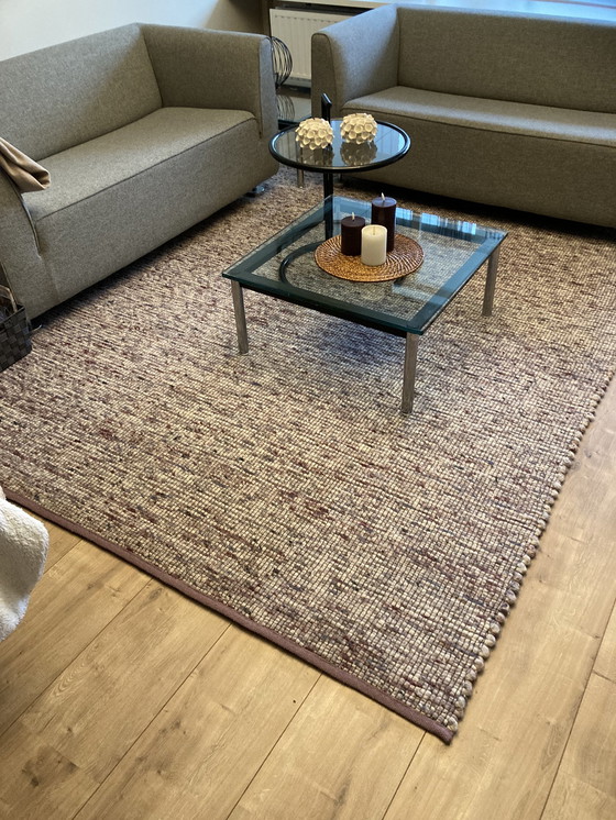 Teppich von de Munk. Maße: 2,00-2,50 m. Farbpalette: ecru -lila- altrosa- etwas dunkelblau- etwas grau. Neupreis: 1750 Euro. Teppich kommt aus tier- und rauchfreiem Haushalt. Keine Flecken - Schäden. Nicht wirklich bewohnt (bin allein)