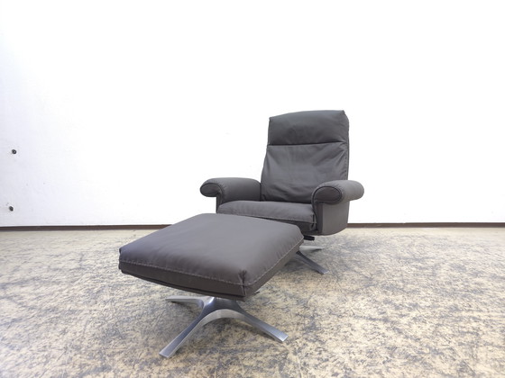 Hiermit handelt es sich um einen Ledersessel mit einem Hocker von der Firma De Sede
