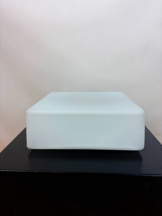Deckenleuchte von Rudolf Zimmermann Bamberg, Deutschland, in den 60er Jahren. Die Leuchte hat einen großen, quadratischen Milchglasschirm.