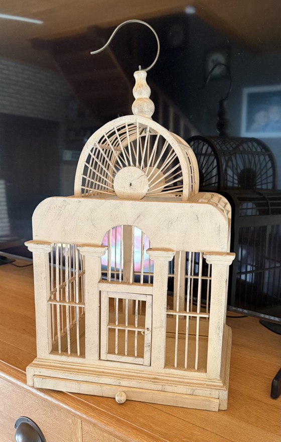 Dieser wunderschöne, dekorative Vogelkäfig aus Holz verströmt zeitlosen Charme und ist perfekt, um jedem Raum einen Hauch von Eleganz zu verleihen. Mit viel Liebe zum Detail gefertigt, ist das Vintage-Design gleichermaßen faszinierend und raffiniert.