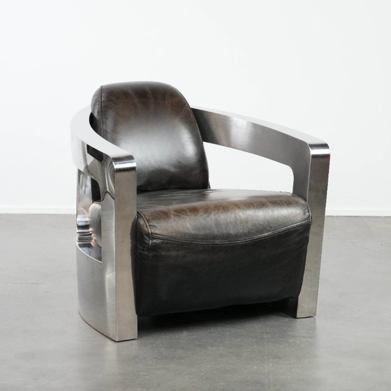 Dieser prächtige Sessel aus Rindsleder mit Aluminiumgestell besticht durch sein einzigartiges Design und ist eine fantastische Bereicherung für jeden Liebhaber. Der Sessel verfügt über ein festes Sitzkissen und bietet hervorragenden Sitzkomfort. Er lässt sich problemlos in nahezu jedem Interieur oder Raum Ihrer Wahl platzieren. Jahrelange, sorgsame Nutzung weisen normale Gebrauchsspuren auf. Strukturell ist er in gutem Zustand und sofort einsatzbereit. Bei richtiger Pflege und Wartung wird Ihnen dieser wunderschöne Sessel viele Jahre lang Freude bereiten! Findet er einen Platz in Ihrem Zuhause?