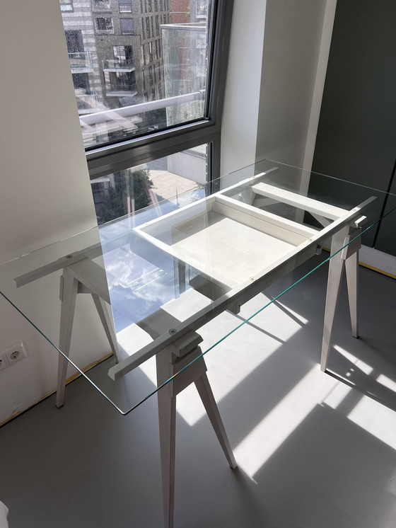 Lernen Sie Ihren neuen Lieblingsplatz am Arbeitsplatz kennen: den Arco Schreibtisch von Chuck Mack für Design House Stockholm. Dieser elegante Schreibtisch kombiniert eine transparente Glasplatte mit einem robusten, weißen Holzgestell und schafft so einen modernen Look, der sowohl stilvoll als auch funktional ist. Er eignet sich perfekt für jedes Homeoffice oder jeden kreativen Raum und bietet ein offenes und helles Ambiente, das die Produktivität fördert.