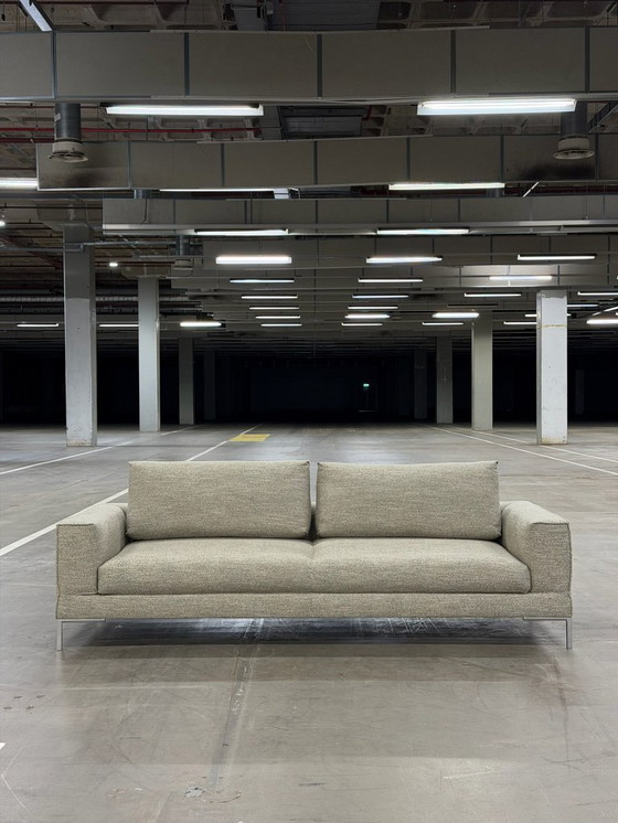 Diese Aikon Lounge von Design (auf Lager) wurde mit einem hochwertigen Leinen-Polyester-Gemisch in einem ruhigen Beige-Sand-Ton neu bezogen und befindet sich daher in neuwertigem Zustand. Der Sitz wurde geprüft und bei Bedarf für optimalen Sitzkomfort optimiert. Der Bezug ist elegant und sorgfältig verarbeitet und vereint natürliche Optik mit praktischer Funktionalität. Die schlanken Metallbeine verleihen dem Sofa einen leichten und modernen Charakter und unterstreichen das zeitlose Design.