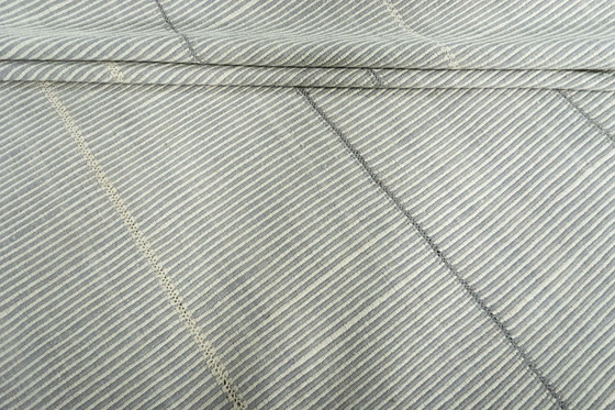 Ein einzigartiger handgewebter Designer-Kelim, der mit seinem modernen, minimalistischen Design und hochwertiger Handwerkskunst überzeugt. Die feinen, horizontalen Linien verleihen dem Teppich eine dezente Struktur, während die sanften Farbverläufe für eine ruhige und stilvolle Atmosphäre sorgen.