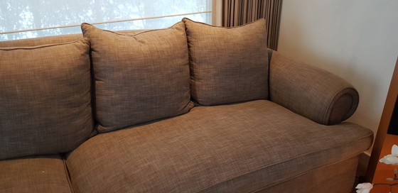 Entdecken Sie dieses wunderschöne Designersofa von Heeren van Hovelingen. Mit seinen großzügigen Maßen von 490 cm Länge, 120 cm Tiefe und 95 cm Höhe (Sitzhöhe 41 cm) bietet dieses Sofa viel Platz für die ganze Familie. Der warme Braun-/Taupe-Ton und das moderne Design machen es zu einer stilvollen Bereicherung für jedes Wohnzimmer.