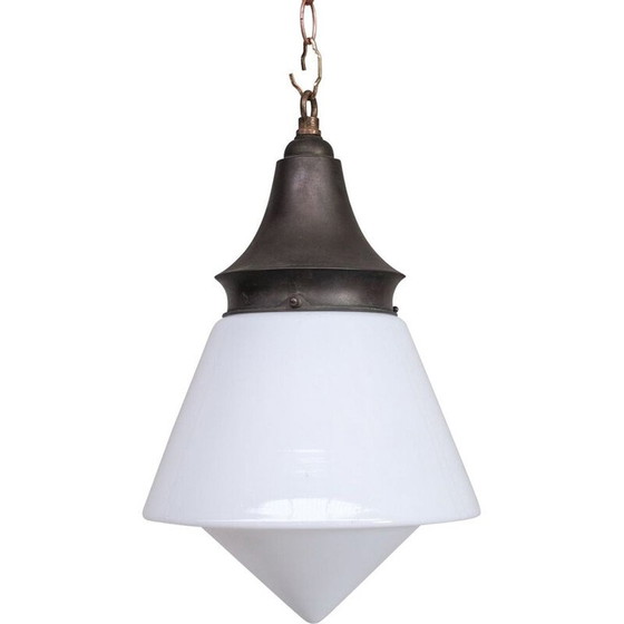 Eine elegante Pendelleuchte aus Opalglas im Stil einer Eichel.