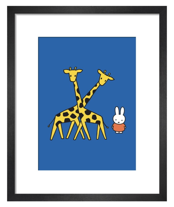 Dick Bruna: "Miffy und die Giraffe". Am unteren Rand des Rahmens sind der Name des Künstlers, der Titel des Werks und das Copyright in Kleindruck angegeben. Das Werk ist in ausgezeichnetem Zustand. Es wurde nie gerahmt und in einem dunklen Archiv zwischen säurefreiem Schutzpapier aufbewahrt. Die gezeigten Fotos sind Teil der Beschreibung, der gezeigte Rahmen (Größe) dient nur der Veranschaulichung und ist nicht im Lieferumfang enthalten. Dieses Kunstwerk wird sorgfältig fest verpackt und in schützendem säurefreiem Papier versandt.