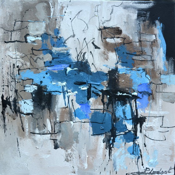Dieses abstrakte Werk fängt durch den kühnen Einsatz von Farbe und Form eine lebendige Dynamik ein. Die leuchtenden Blautöne, gemischt mit Grau- und Brauntönen, bilden einen auffälligen Kontrast zu dem blassen Hintergrund. Die schwarzen Striche erinnern an spontane Bewegungen und verleihen dem Gemälde Tiefe und Intensität. Der Künstler verwendet eine gestische Technik, die ein Gefühl von Energie und Fluidität vermittelt. Die Spritzer und ineinander verschlungenen Linien bilden eine ausgewogene und doch freie Komposition, die an belebte Stadtlandschaften erinnert. Jeder Pinselstrich ist präzise, behält jedoch eine ausdrucksstarke Qualität und führt das Auge durch einen fesselnden visuellen Tanz. Dieses Gemälde zelebriert das organisierte Chaos und lädt zur introspektiven Kontemplation und zur Erforschung der Fantasie ein.