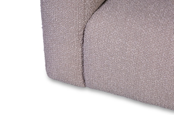 Die Sitzgruppe Bouloge von DMO Collection besteht aus einem Lounge-Element mit rechter Armlehne (Maße 94 x 161 cm), einem 1,5-Sitzer (Maße 77 x 98 cm) und einem 1,5-Sitzer mit linker Armlehne / Stoff S2-Raisa