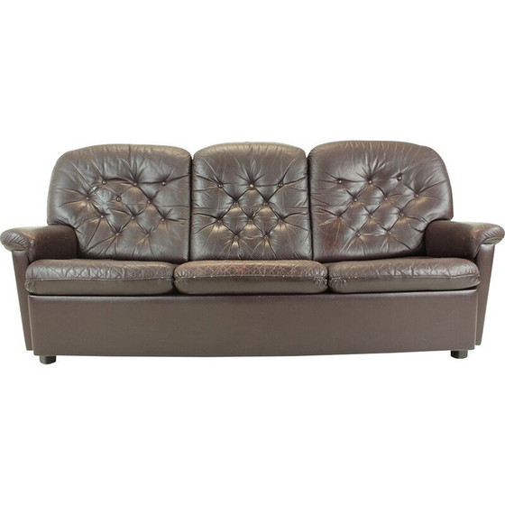 Dreisitziges Ledersofa, Tschechoslowakei 1970er Jahre