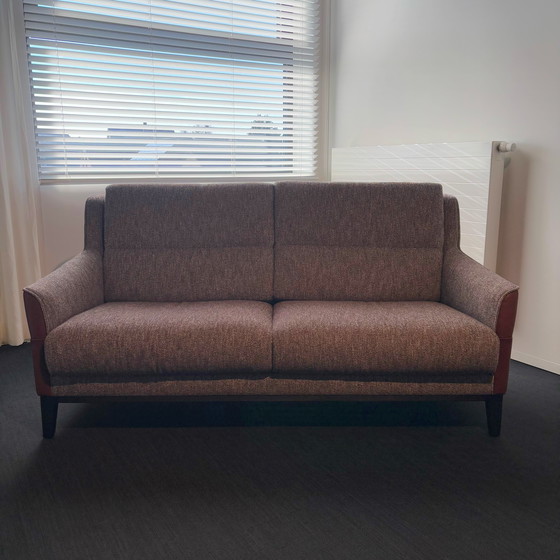 Durlet Rialto 2-Sitzer-Sofa. Dieses stilvolle Sofa vereint Komfort und Eleganz auf perfekte Weise. Mit einem luxuriösen Bezug aus De Ploeg Vivid-Stoff und Stolz Concorde Cognac-Leder verleiht es jedem Raum eine edle Optik und sorgt für ein warmes und stilvolles Ambiente. Maße: 187 cm (Breite), 90 cm (Höhe), 46 cm (Sitzhöhe), 95 cm (Tiefe).