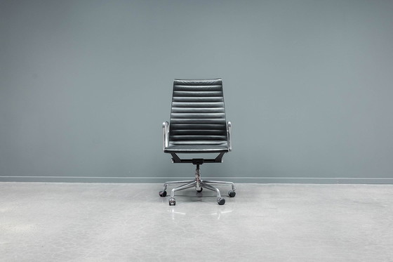 Wir haben 8 von diesen Stühlen auf Lager. -Designer: Charles & Ray Eames -Hersteller: Herman Miller -Materialien: schwarzes Leder/polierter Alurahmen -Zustand: sehr guter Zustand!