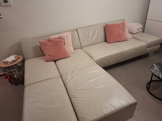 Stellen Sie sich vor, wie Sie nach einem langen Tag in dieses bequeme beige Ecksofa aus Leder sinken. Sein modernes Design und der neutrale Farbton machen es zur perfekten Ergänzung für jedes Wohnzimmer und verleihen ihm einen Hauch von Eleganz und Gemütlichkeit.