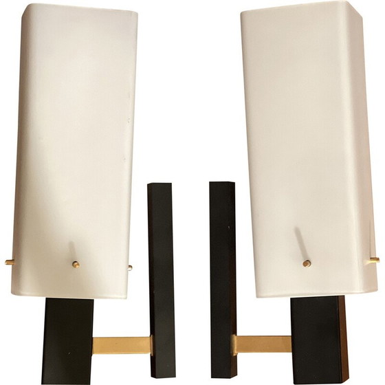 Ein Paar Vintage-Wandleuchten aus Metall und Opalin von Arlus, 1950
