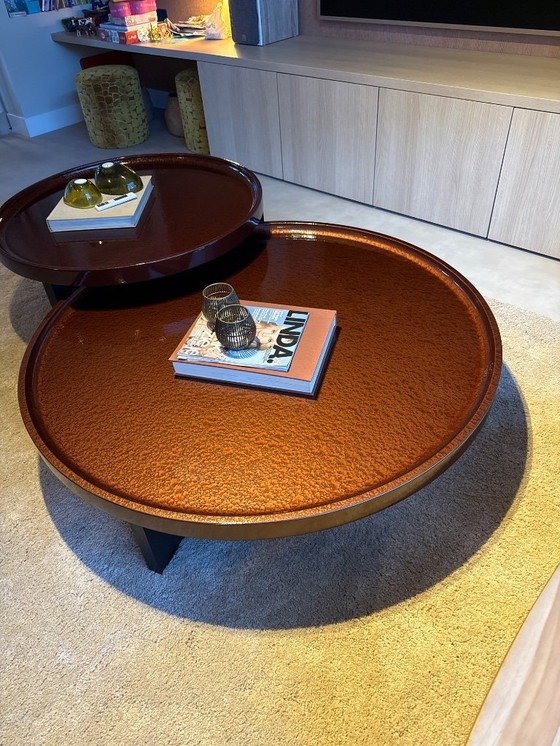 Der rote Couchtisch Mayson vereint schlichtes Design mit praktischer Funktionalität. Die runde Tischplatte ist in einem warmen Rotton gehalten und ruht auf einem stabilen schwarzen Holzgestell. Sein niedriges, breites Design bietet viel Platz für Dekorationen, Zeitschriften oder Snacks. Der Kontrast zwischen der glänzenden Tischplatte und den matten Beinen verleiht dem Tisch einen modernen Look und passt perfekt in viele Einrichtungsstile.