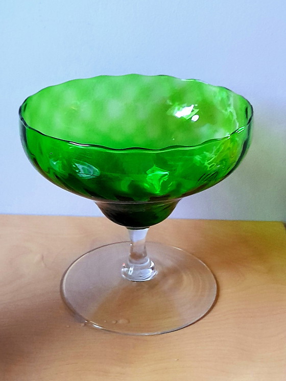 Entdecken Sie diese elegante Empoli-Glasschale aus den 1970er-Jahren. Ihr leuchtendes Grün und ihre zarte Form machen sie zu einer perfekten Ergänzung jeder Vintage-Sammlung. Sorgfältig gefertigt, verkörpert sie den zeitlosen Charme italienischen Designs. Hervorragender Zustand.