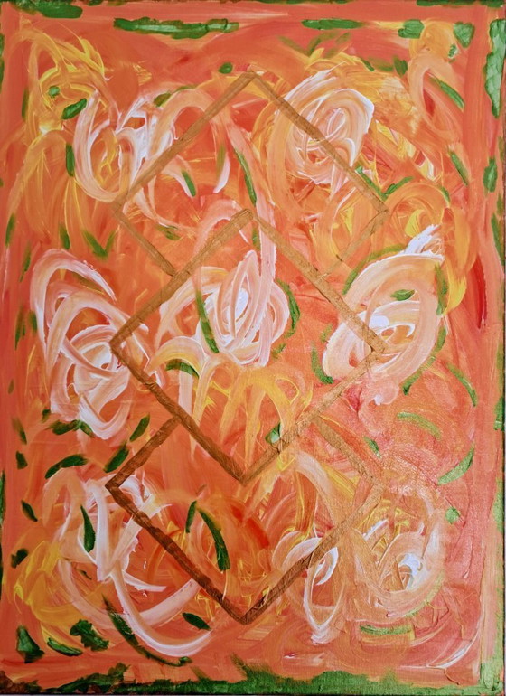 ZustandAusgezeichnetFarbenGrün, Gold, OrangeMaterialLeinwandAnzahl der Artikel1OrientierungPorträtFormatMediumHöhe73 cmBreite54 cm