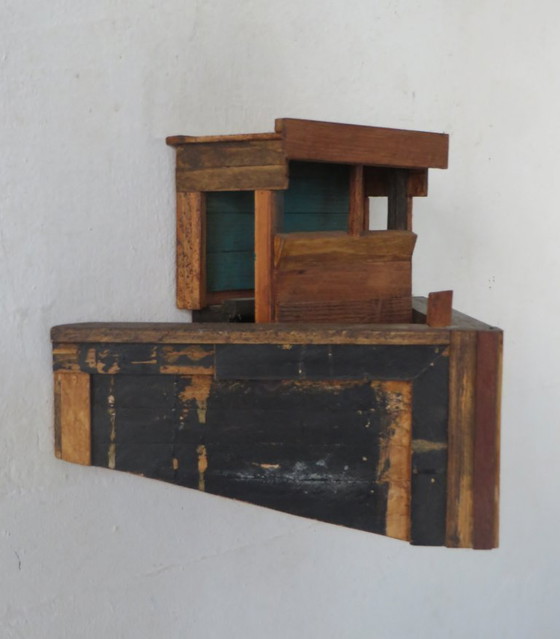 Einzigartiges, bemaltes Wandbild aus Holz. Künstler: Eric van Solm. Ausbildung: Willem de Kooning Rotterdam, 1980–1985, Fachbereich Visuelle und Raumgestaltung. Registriert bei der R.K.D.
