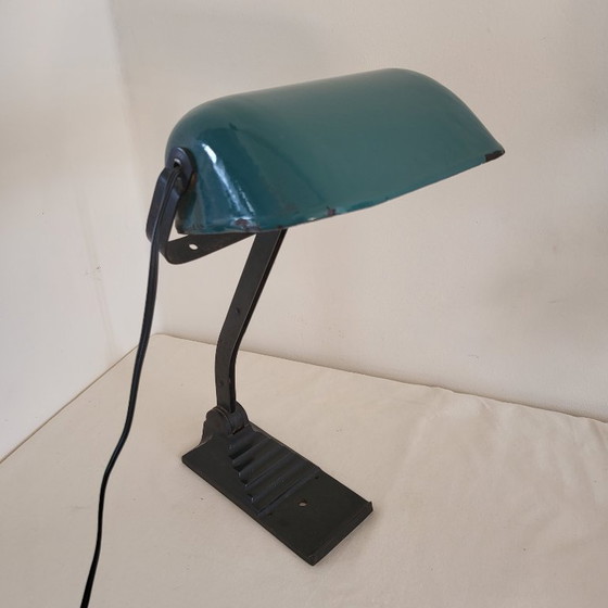 Ikonische Erpé-Schreibtischlampe Modell 52 mit verstellbarem Lampenschirm im Bauhaus-/Industriestil. Auch bekannt als Notar- oder Bankierslampe.