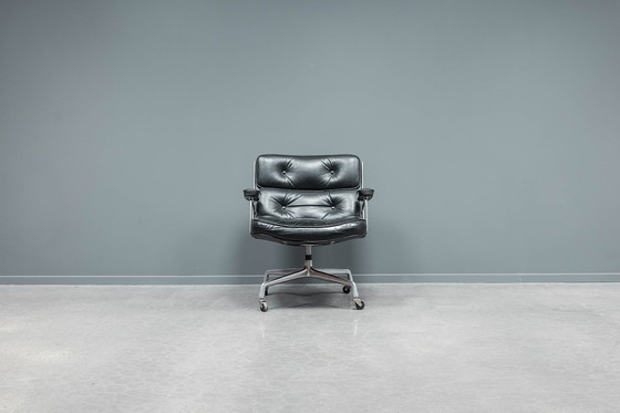 Der wahrscheinlich bequemste Bürostuhl, den es gibt. -Designer: Charles & Ray Eames -Hersteller: Herman Miller -Materialien: schwarzes Leder/polierter Alurahmen -Zustand: guter Vintage-Zustand!