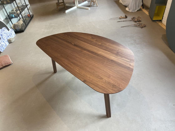 Der organische Esstisch Mito von Qliv ist aus Walnussholz gefertigt.