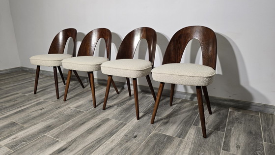 Esszimmerstühle von Antonin Suman, 1960er Jahre, 4er Set Holz wurde aufgearbeitet, neue Polsterung Polstermaterial - Boucle Entworfen und hergestellt in der Tschechoslowakei