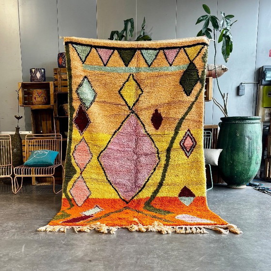 Farbenfroher marokkanischer Teppich in Gelb und Orange, authentischer marokkanischer Teppich