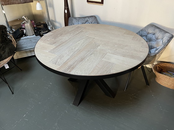 Fischgrättisch aus alter Eiche. Ausstellungsstück.