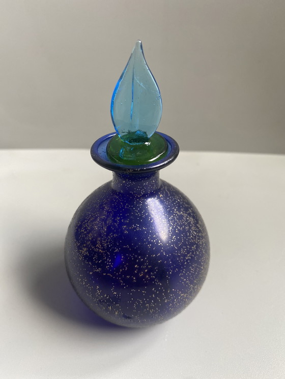 Erleben Sie die zeitlose Eleganz der Handwerkskunst aus Murano mit diesem exquisiten Parfümflakon. Das aus feinstem Muranoglas mundgeblasene Stück besticht durch seinen tiefen kobaltblauen Farbton, der im Licht subtil ins Violette changiert. Der Flakon ist mit zarten 24-Karat-Goldsprenkeln verziert, die dem ohnehin schon luxuriösen Erscheinungsbild noch einen Hauch von Opulenz verleihen. Dieses einzigartige Stück ist ein echtes Sammlerstück und eignet sich perfekt für alle, die die Kunst der Glasherstellung und die Schönheit des italienischen Designs zu schätzen wissen.