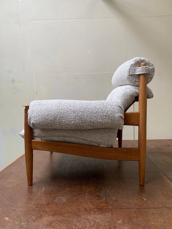 Schwedischer Loungesessel - Eric Merthen - Eiche & Wollbouclé - restauriert
