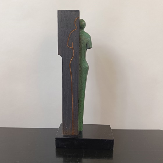 Frank Stoopman - Skulptur Menschliche Figur, halb aus Holz und halb aus Bronze, zu einem Ganzen zusammengefügt. Die Skulptur ruht auf einem Marmorsockel. Die Skulptur trägt den Titel: Forming a unity together for better or worse. Das Objekt eignet sich auch gut als Buchstütze/Bücherständer. Abmessungen: H23 x B10 x T6 cm Zustand: In sehr gutem Zustand. Bitte beachten Sie: Für Ihr Reiseziel, fragen Sie bitte nach den individuellen Versandkosten! Für mehr Vintage und Design siehe auch meine anderen Anzeigen. Wenn etwas dazwischen ist, Sie es aber erst einmal besichtigen möchten, ist das natürlich möglich. Nehmen Sie einfach Kontakt mit mir auf, um einen Termin zu vereinbaren. Wohnen Sie zu weit weg oder haben Sie kein geeignetes Transportmittel? Es gibt immer die Möglichkeit, den Artikel zu verschicken, zu liefern oder über einen Kurierdienst liefern zu lassen.