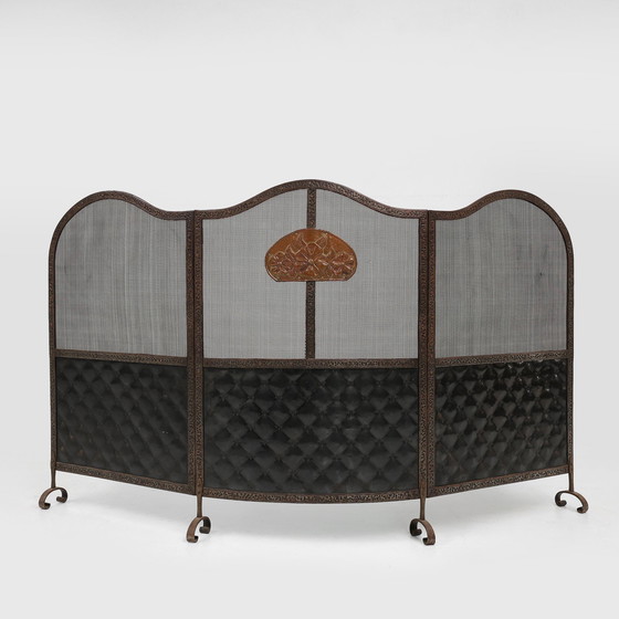 Frankreich / 1915 / Kaminschirm / Roheisen / Art Deco / Art Nouveau / Mid Century Ein großer Art Deco Kaminschirm aus Schmiedeeisen mit 3 Platten. Hergestellt in Frankreich um 1915. Dieses schöne Stück dient als Schutz vor Funken und Glut, wertet aber auch die Ästhetik Ihres Kamins auf. Er ist aus Schmiedeeisen gefertigt und hat eine satte schwarze Oberfläche, die durch filigrane goldene Akzente wunderbar ergänzt wird. Das dreiteilige Design ermöglicht eine vielseitige Platzierung, die sich leicht in jede Raumaufteilung einfügt und dennoch einen ausreichenden Schutz bietet. Der Kaminschirm ist in sehr gutem Zustand mit nur einem kleinen Loch im Netz. Abmessungen geschlossen: Höhe: 101 cm Breite: 67 cm Tiefe: 15 cm Ref. Nr. 25-0045